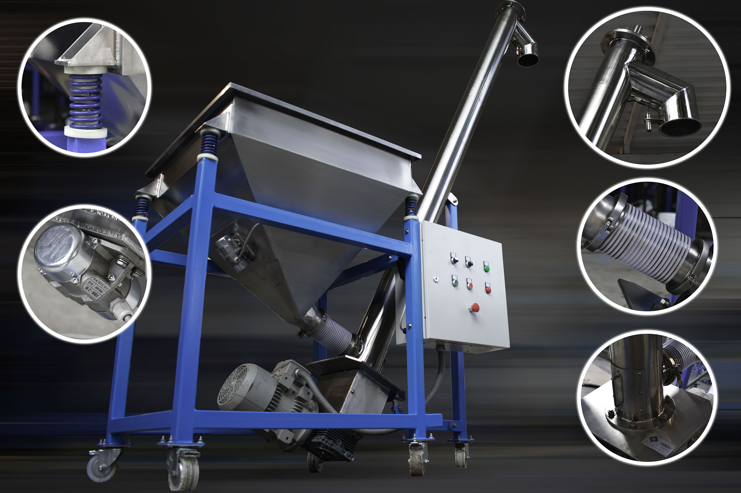 Los transportadores helicoidales son basicamente un tornillo central dentro de un contendor rectangular largo dependiendo de las necesidades de cada uso.